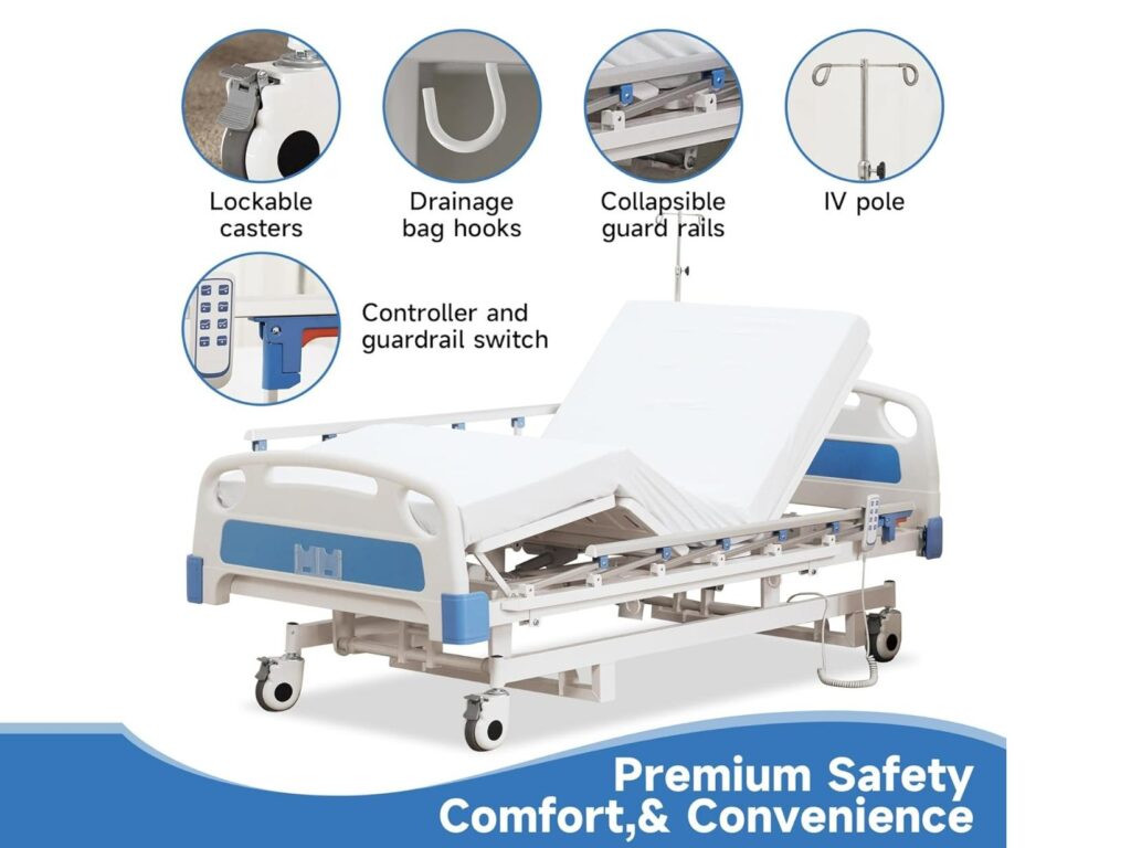 The Repumed Premium 3-Function Full Electric Hospital Bed is designed with real clinical needs in mind. It provides smooth electric adjustment, fall prevention features, and all-in-one convenience, making it ideal for elderly care, post-operative recovery, and home hospice use.